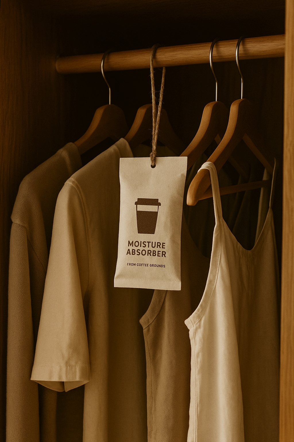 사용한 커피 찌꺼기로 직접 만든 티백을 걸어두니, 은은한 커피 향도 좋고 습기도 확실히 잡아줘요.인테리어 포인트처럼 귀엽기까지 하네요!”